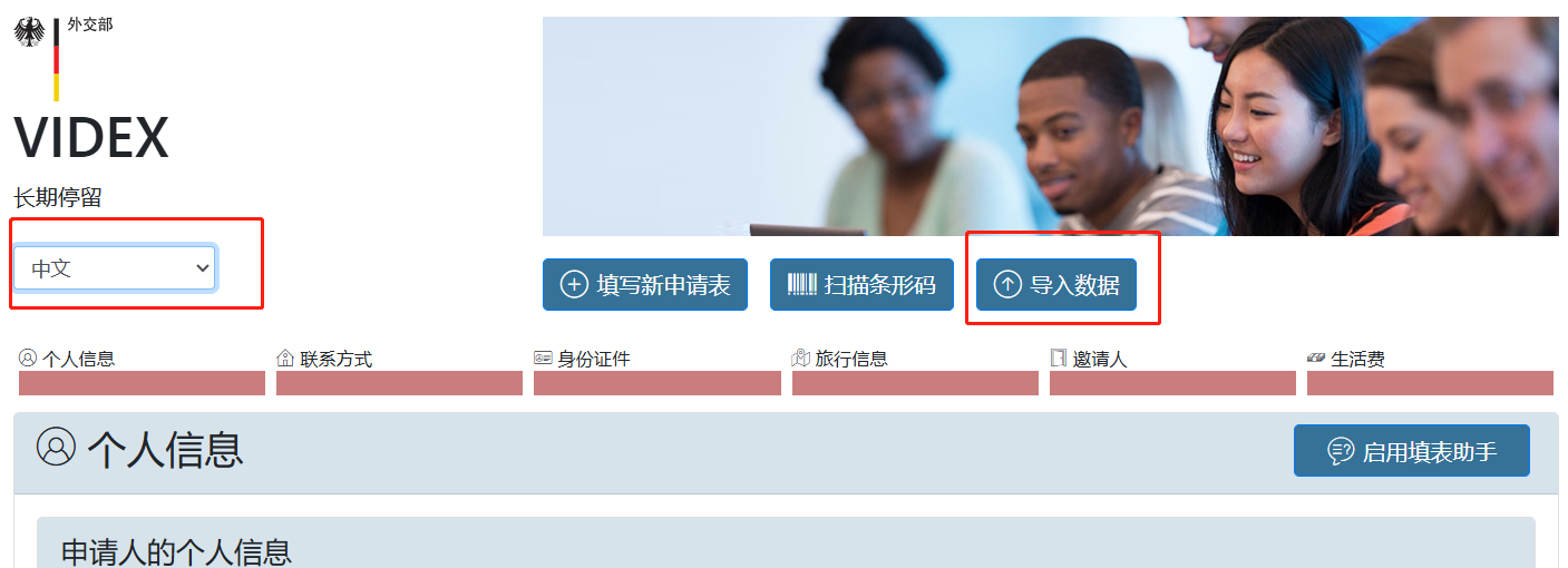 填写申请人信息时只能使用英文(姓名等信息使用拼音),且应与其护照上的信息一致。