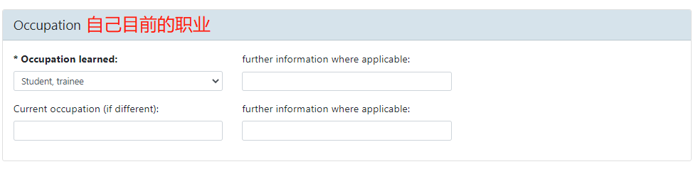 第3步: 填写自己目前的职业/Occupation